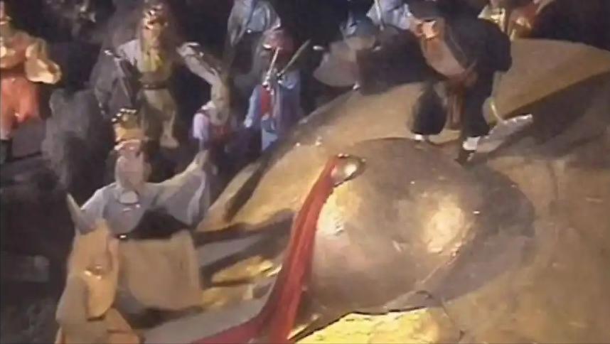 原著第六十五回中,孙悟空被黄眉怪困在金铙后,施展百般神通试图逃离金铙,但始终无济于事。于是,他念动咒语,叫来五方揭谛、六丁六甲、十八位护教伽蓝等护法神,让他们助自己逃出金铙,可众神也无能为力。